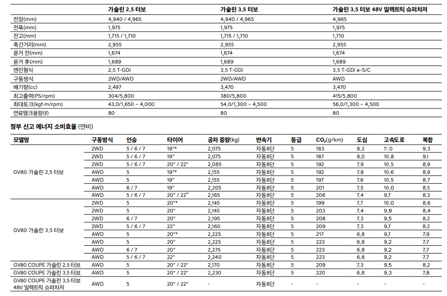 2. 제네시스 GV80 쿠페 제원 정보