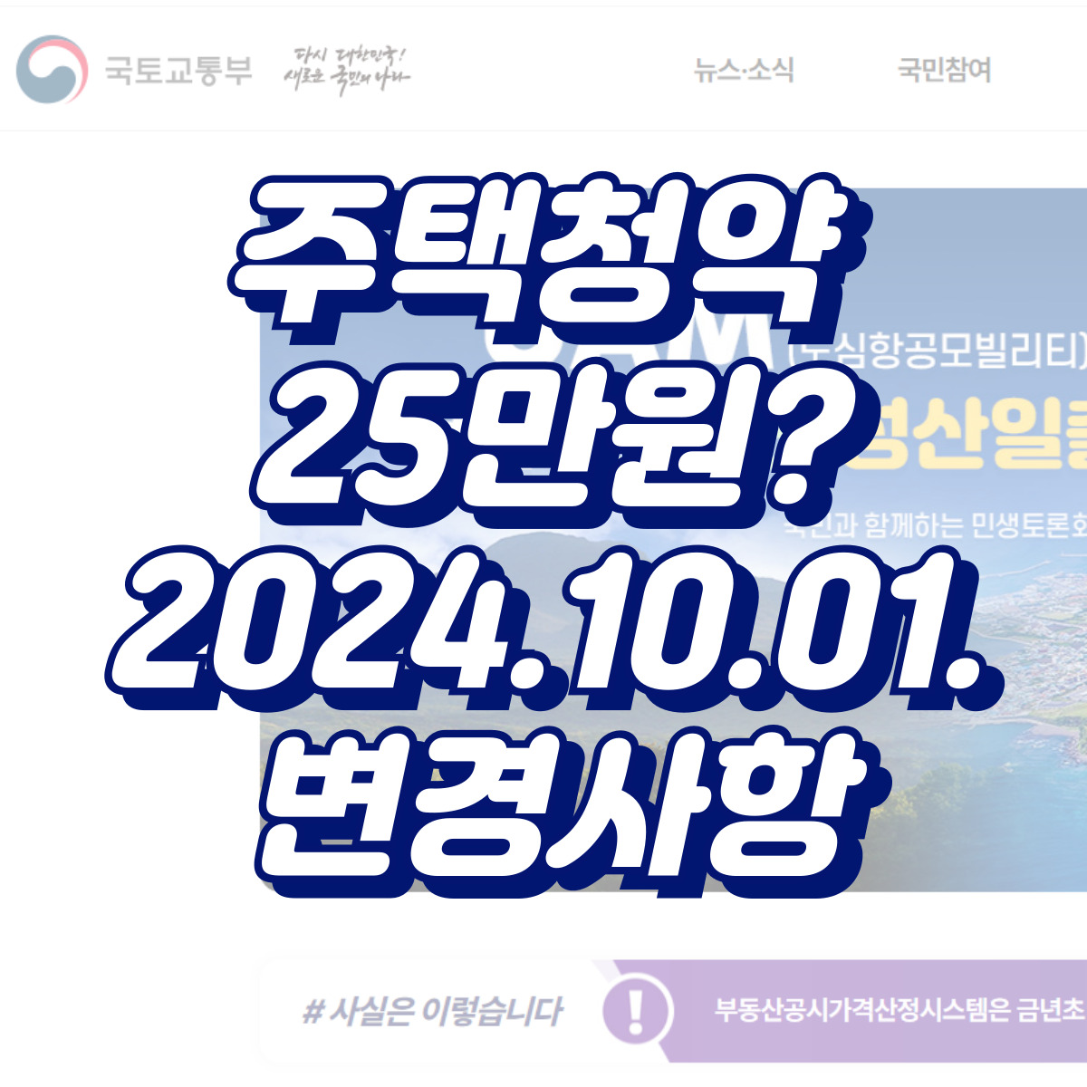 오늘은 국토교통부에서 최근에 변경한 주택 청약통장 내용에 대해서 정리해보겠습니다.