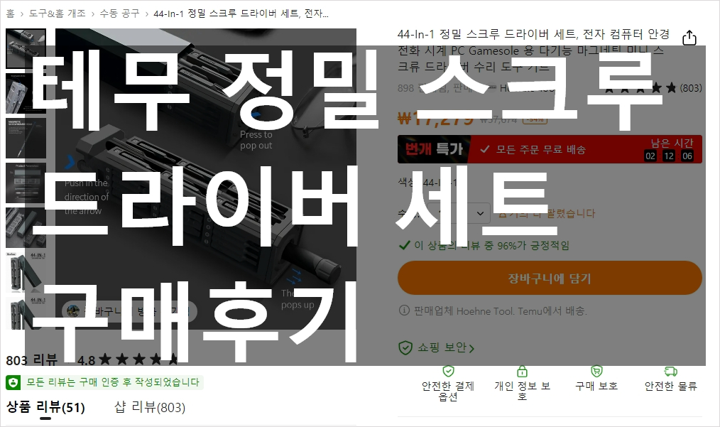 테무 Temu 구매 후기 정밀 스크루 드라이버 세트입니다. 테무 사기 연관 검색어가 자주 뜨길래 고민은 해봤지만 가격이 너무 싸고 무료 배송이라는 점과 알리 익스프레스와 비교했을때 배송 속도등이 매우 궁금하하여 주문해 보았습니다.