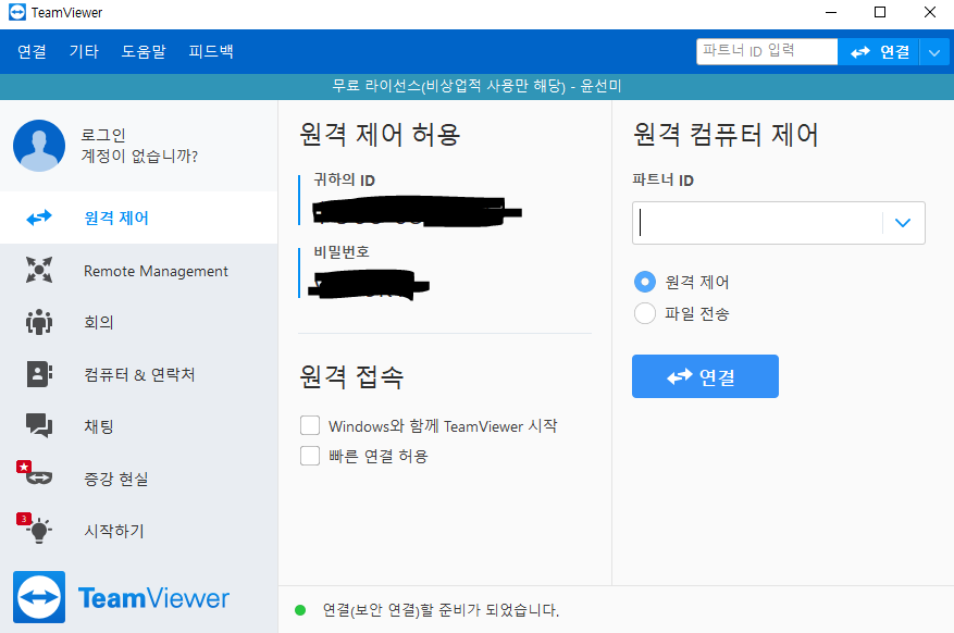 원격 제어라는 거창한 타이틀과 팀뷰어는 단순하게 이용하도록 만들어져서 자주 애용하게 되네요