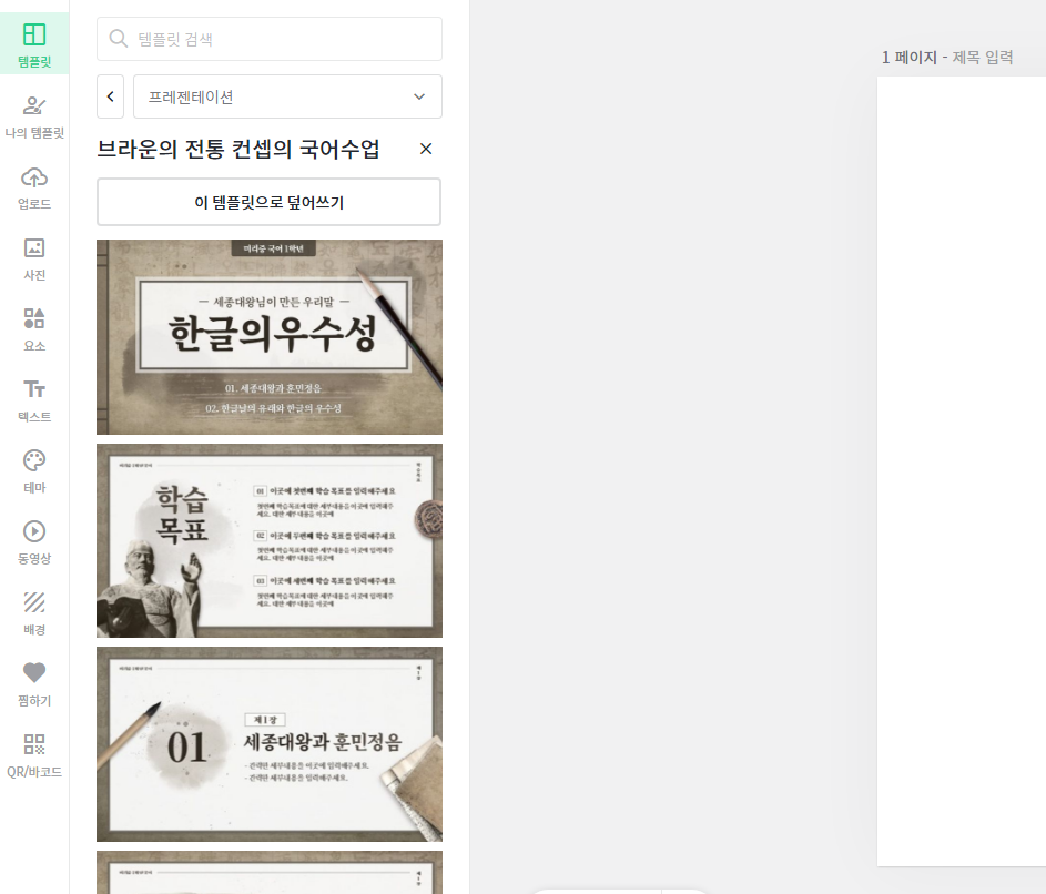 또한 템플릿을 추가하고 싶을경우에는 추가도 가능하기 때문에 거의 파워포인트를 사용하는것 과 별차이가 없습니다.