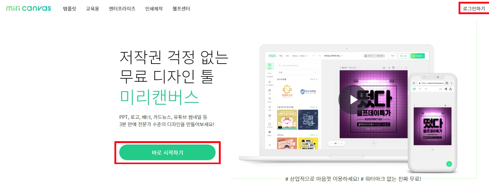 인터넷어서 "미리 캔버스"를 검색해보세요