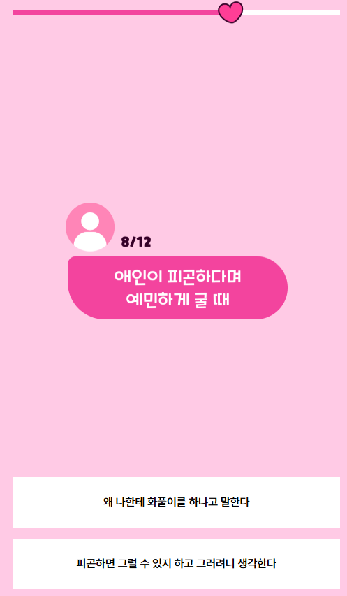 해당 질문에 따라 결과치가 다르게 나오기 때문에 자신의 연애 유형이 정말로 궁금하시다면, 솔직하게 하나씩 답변하는 것을 추천드립니다. 저도 제 유형이 매우 궁금해서 하나씩 진지하게 작성하였습니다.