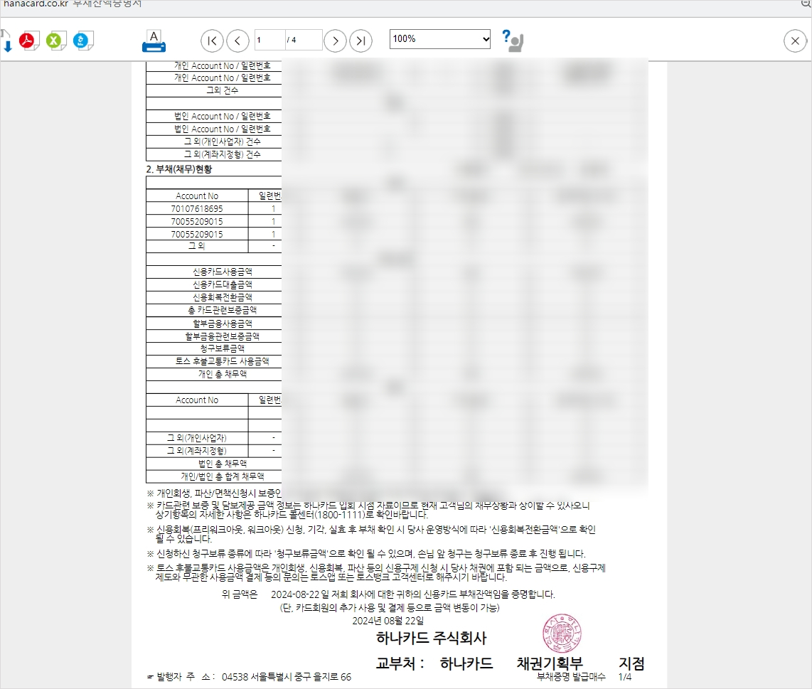 2. 하나카드 부채 잔액 확인서 발급방법 자세히 정리