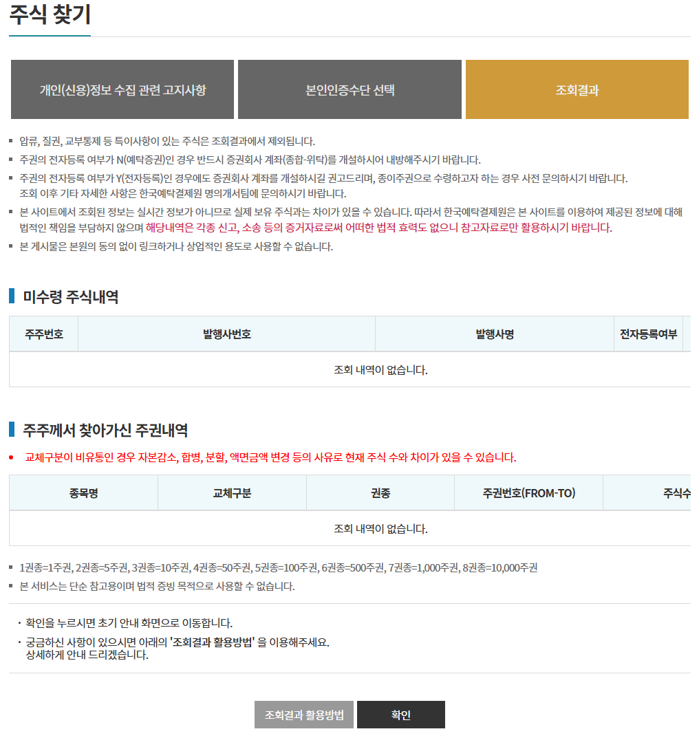 한국예탁결제원 주식찾기 홈페이지 사용방법 (최신)