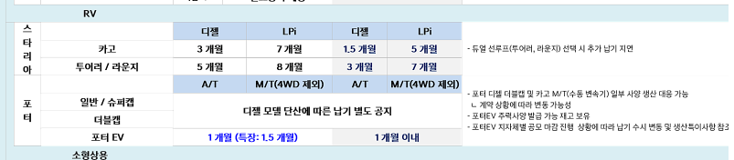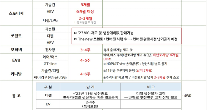 하이브리드 모델 제외하고 모두 4개월 내외로 수령 가능합니다.