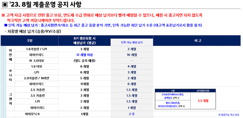 현대차,기아차,제네시스 모두 1년 전보다는 출고기간이 많이 줄었는데 내용 한번 확인해보겠습니다.