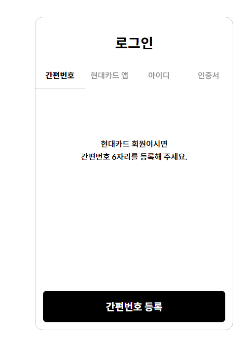 방법은 회원가입을 하거나, 현대카드 앱을 통해서 하거나, 간편 번호로 하는 방법이 있고, 만약 회원가입이 안된 경우에는 공동인증서 로그인을 하게 되면 별도 가입이 필요 없이 가능합니다. 하지만 먼저 "인증서 등록"을 꼭 해주셔야 합니다.