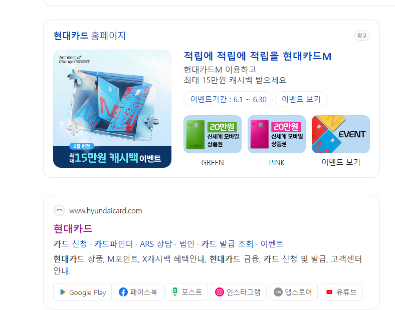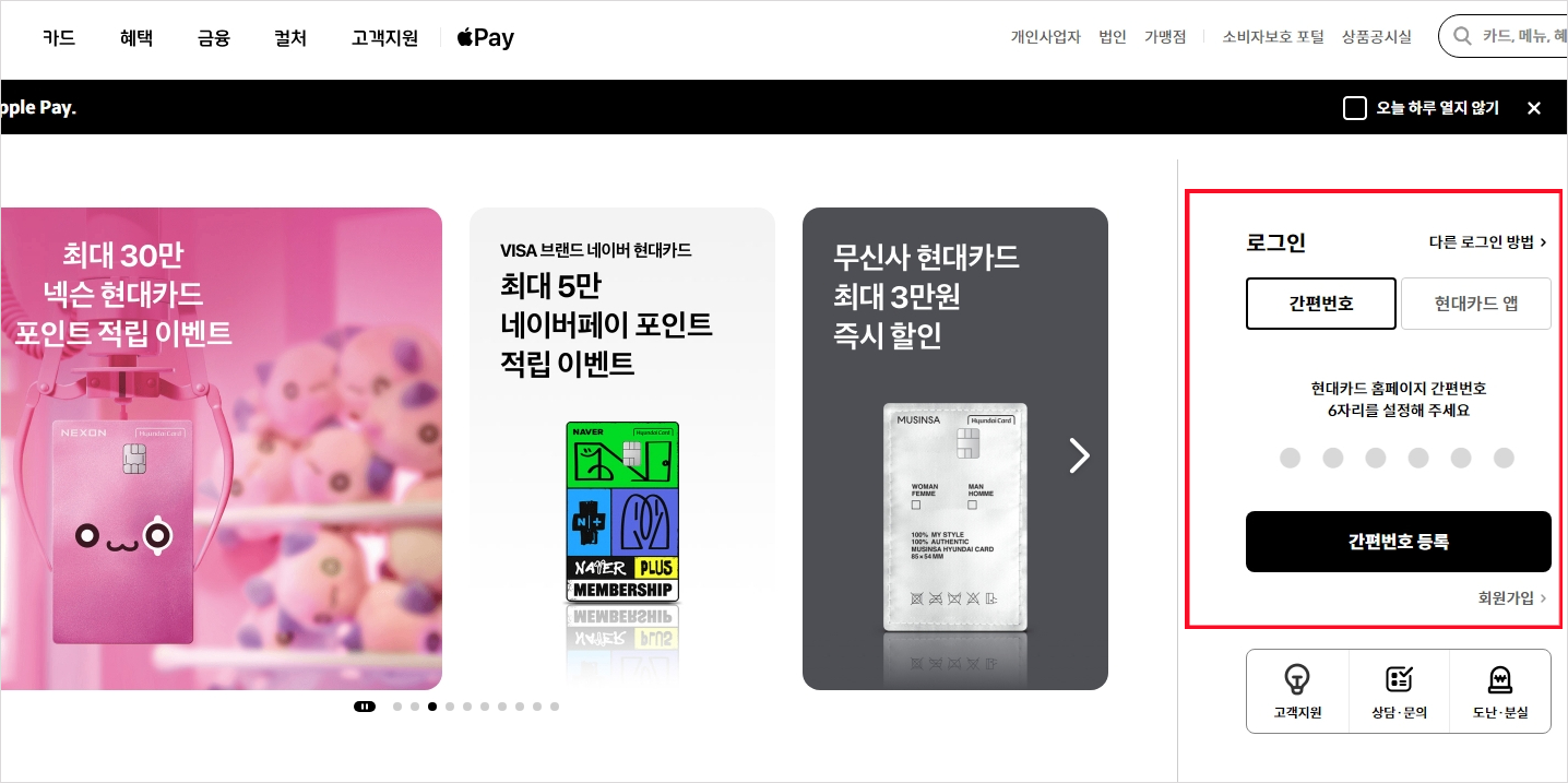 1. 검색포탈에서 "현대카드" 홈페이지 찾아 접속