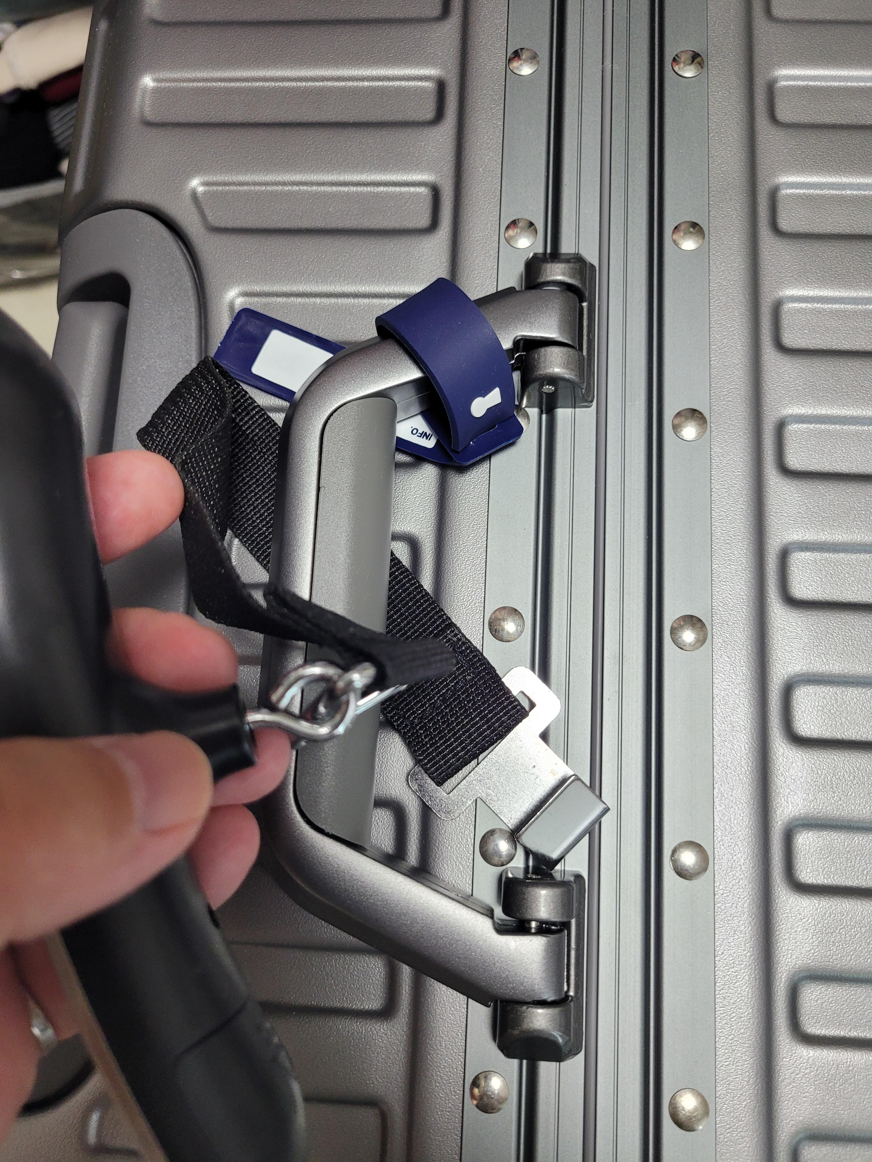 고리가 넉넉하여 웬만한 캐리어에는 다 들어갈 거 같으니 걱정하지 않으셔도 됩니다.
