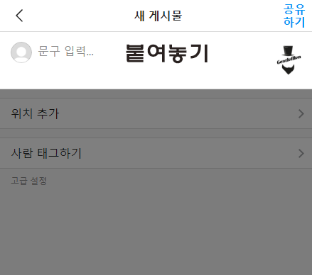 인스타에 가서 사진을 올리고, 문구 입력하는 곧에다가 길게 눌러서 "붙여놓기"해줍니다^^