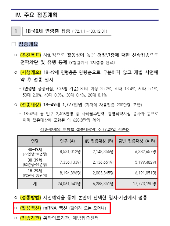오늘은 18~49세 연령층의 코르나 19 예방 접종 계획에 대해서 일정이나와 정리해보겠습니다.
