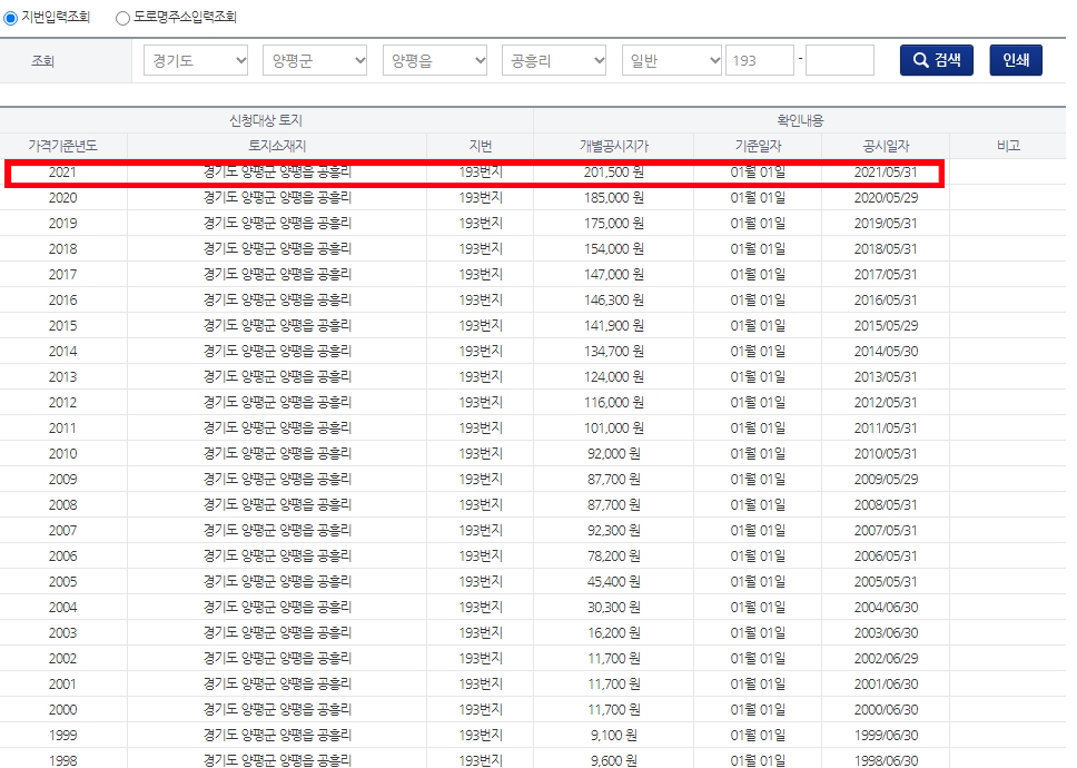 2021년 개별 공시지가 조회 각 지역별 확인 방법