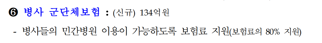 6번 병사 군단체보험 병사들의 민간 병원 이용이 가능하도록 보험료 지원