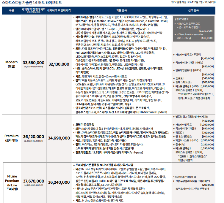 2024 투싼 하이브리드 가격