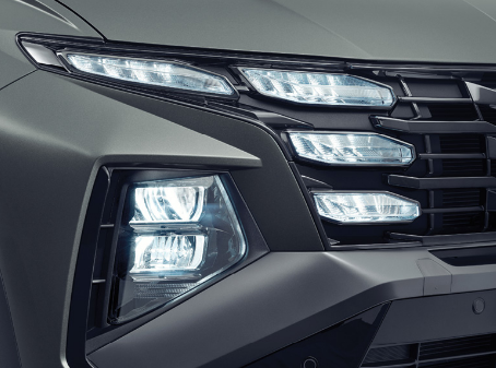 타크 크롬 라디에이터 그릴로 투싼만에 장점을 살렸고, 풀 엘리디 헤드램프를 통해 투싼만의 씨그니처 라이틀 만들었습니다. 개인적으로 호블호가 갈리는 부분이지만 좋아하시는 분들은 매우 좋아한다고 하네요.