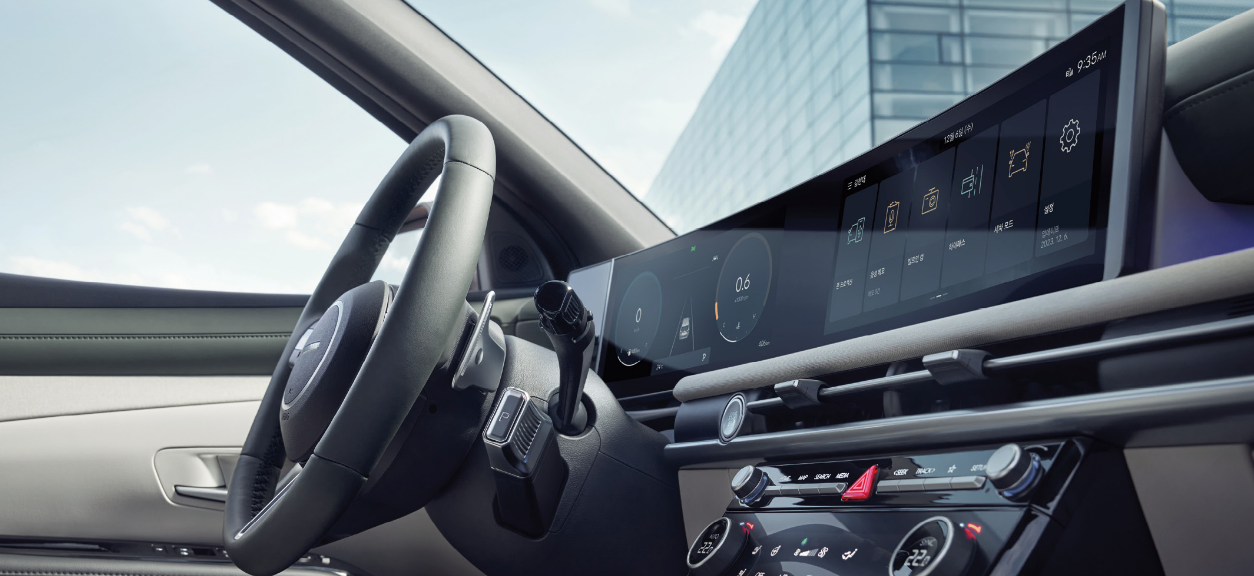 내장도 12.3인치 디스플레이를 곡서 형태로 배치하여 정말 고급차 타는 느낌이 납니다. 개인적으로 이 부분이 가장 마음에 드는 부분입니다. 거기에 핸들 옆에 전자식 변속 칼럼이 달려있어 손을 내리지 않아도 전진 후진이 가능합니다. 실제 운영해보지 않아 모르겠지만 적응이 된다면 매우 편할 거 같습니다.