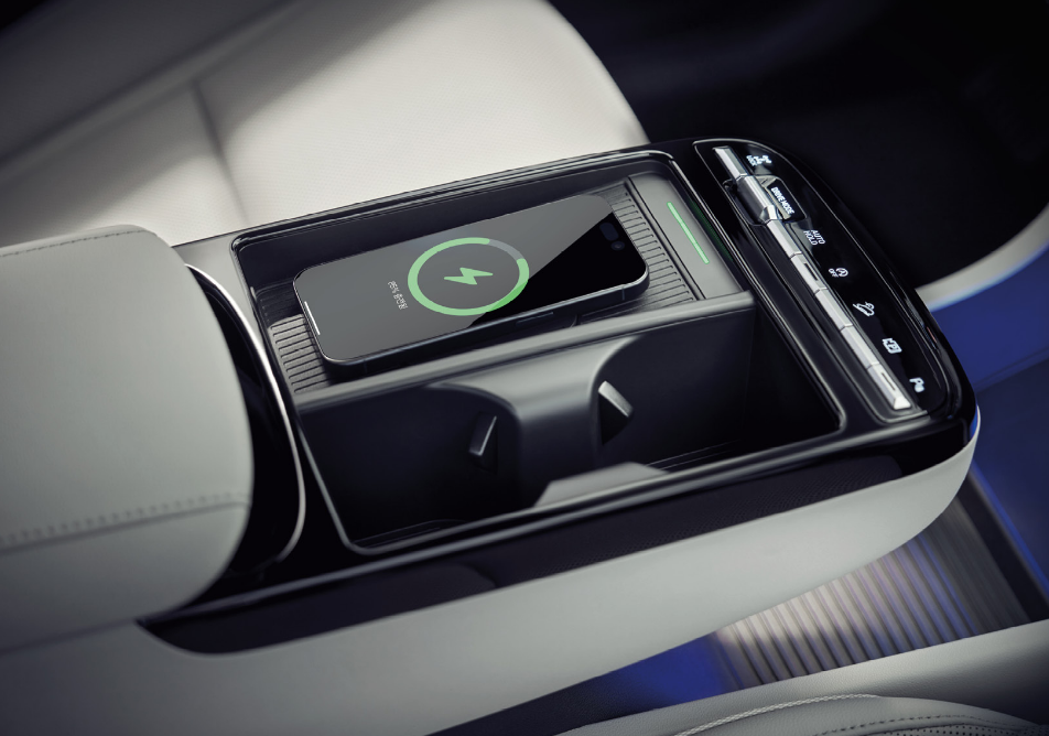 그리고 전자식 변속칼럼이 달려 있어 기존에 기어가 달려있던 부분이 남게 되는데 거기에 핸드폰 충전기등에 편의 성이 더해져서 좋은 거 같고, 운전 보조석에 오픈형 트레이가 생겨 간단한 소지품이나 태블릿등 놓기 좋게 되어 있는데 이 부분은 또한 좋아하실 분이 많을 거 같네요