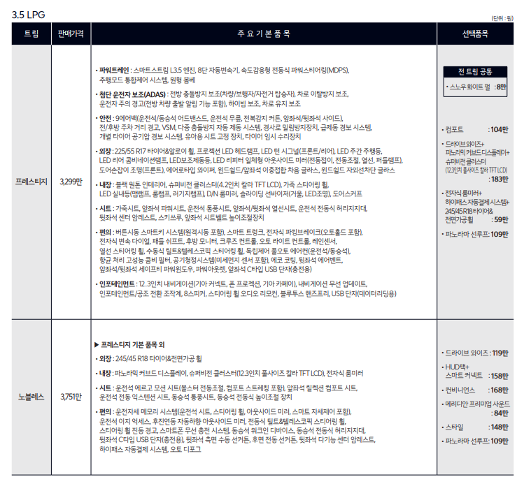 2024 K8 하이브리드, 가솔린, LPG 모델에 대해서 가격 제원 그리고 옵션에 대한 정보를 정리해보록 하겠습니다.