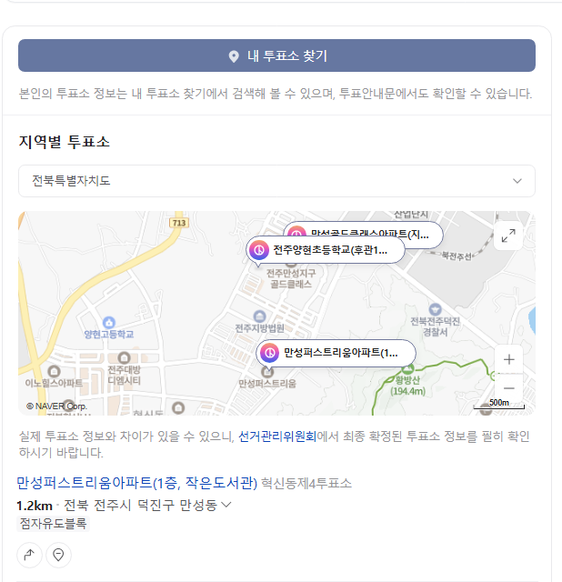 - 네이버 지도나 카카오맵 앱에서 '사전투표소'를 검색