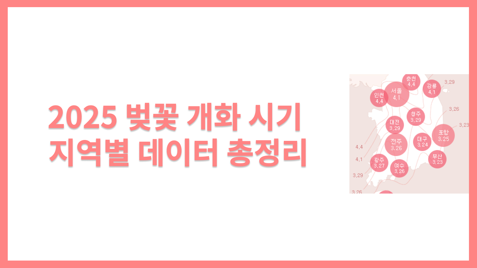 봄이 다가오면 가장 먼저 떠오르는 꽃이 바로 벚꽃입니다. 전국 곳곳에서 벚꽃이 만개하면 따뜻한 봄기운을 만끽하려는 사람들로 북적이는데요. 하지만 벚꽃은 개화 후 비교적 짧은 기간 동안만 볼 수 있어 정확한 개화 시기를 아는 것이 중요합니다. 이번 글에서는 2025년 벚꽃 개화 시기를 지역별로 정리하고, 개화 시기에 영향을 미치는 요인, 벚꽃이 아름다운 명소까지 함께 소개해 드리겠습니다. 벚꽃 여행을 계획하고 계신다면 꼭 참고해 주세요.