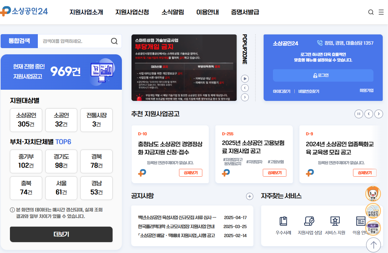 - 소상공인배달택배비지원 또는 소상공인 24 접속