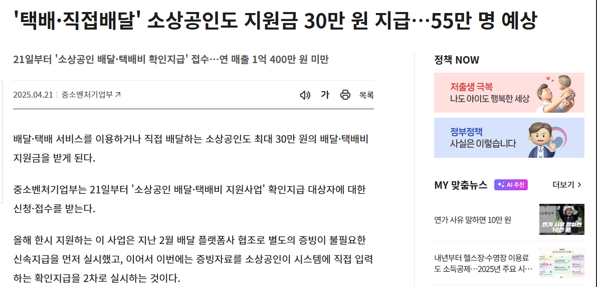 소상공인들의 경영 부담을 덜어주기 위한 반가운 소식이 있습니다! 중소벤처기업부에서 시행하는 '2025 소상공인 배달·택배비 지원사업'의 확인지급 신청이 시작되었는데요. 최대 30만 원까지 지원받을 수 있는 제도에 대해서 하나씩 정리해보도록 하겠습니다. 꼭 확인하세요