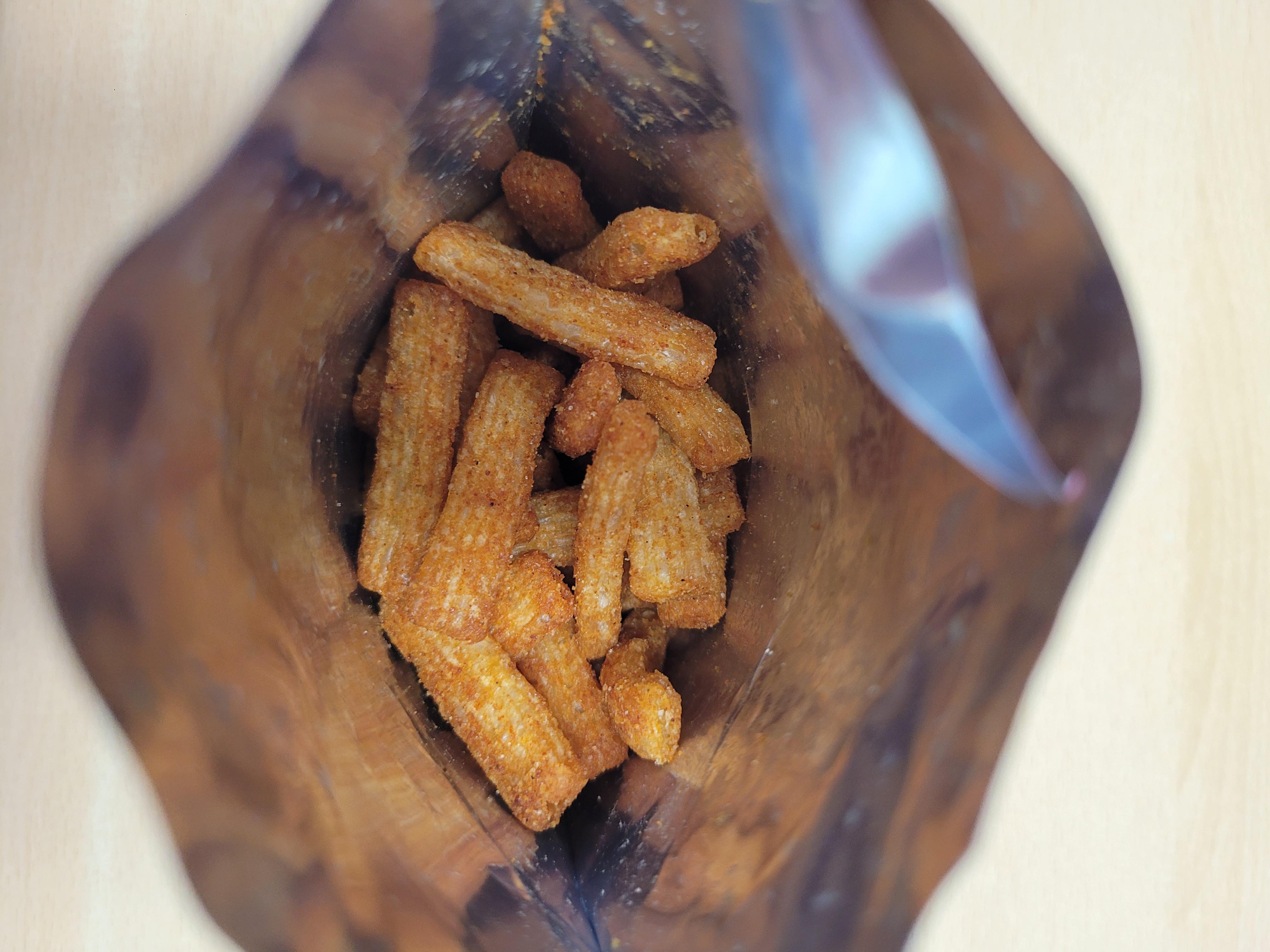 과자에 씨즈닝이 어마 엄하게 묻어 있습니다. 열자마자 매콤한 향이 코를 찔렀습니다.