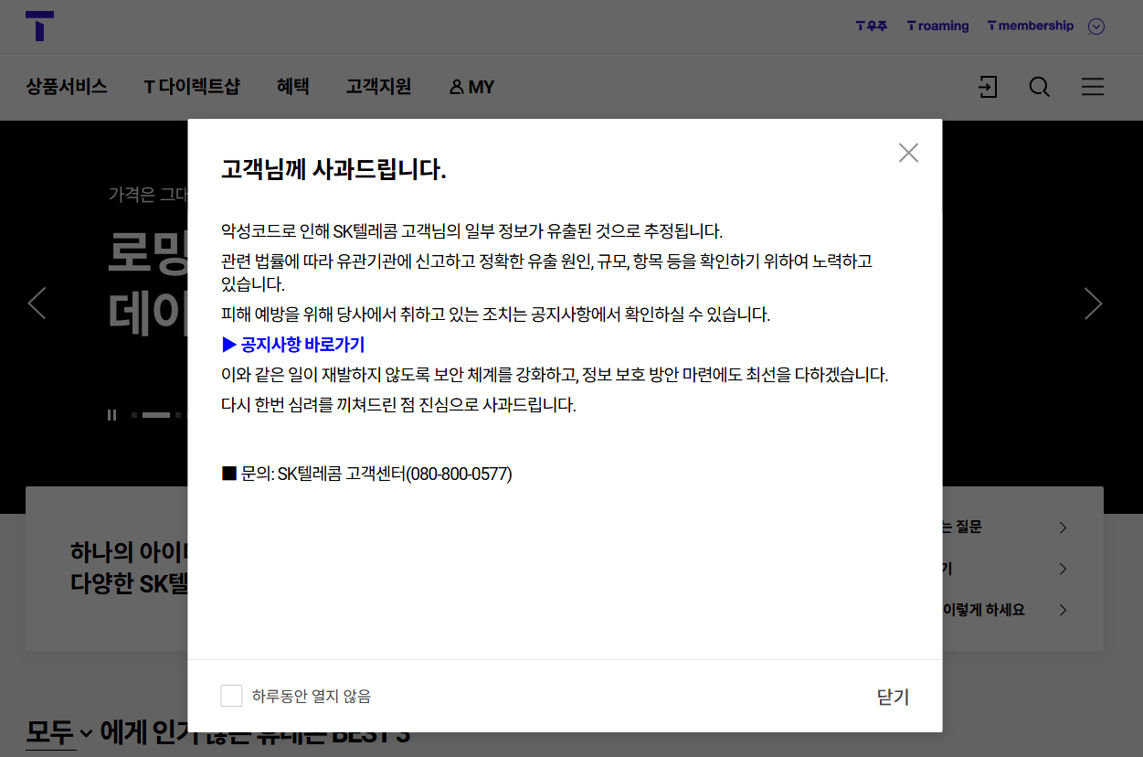 현재 SK텔레콤이 해킹 공격을 받아 일부 고객의 유심(USIM) 정보가 유출되었다고 합니다. 유출된 정보에는 IMSI, IMEI, 유심 인증키 등이 포함되어 있으며, 이는 '심 스와핑'을 통한 자산 탈취에 악용될 수 있다고 합니다. SK텔레콤는 자구책 중 하나로 SKT 유심 보호서비스를 가입을 권유 하고 있습니다.
