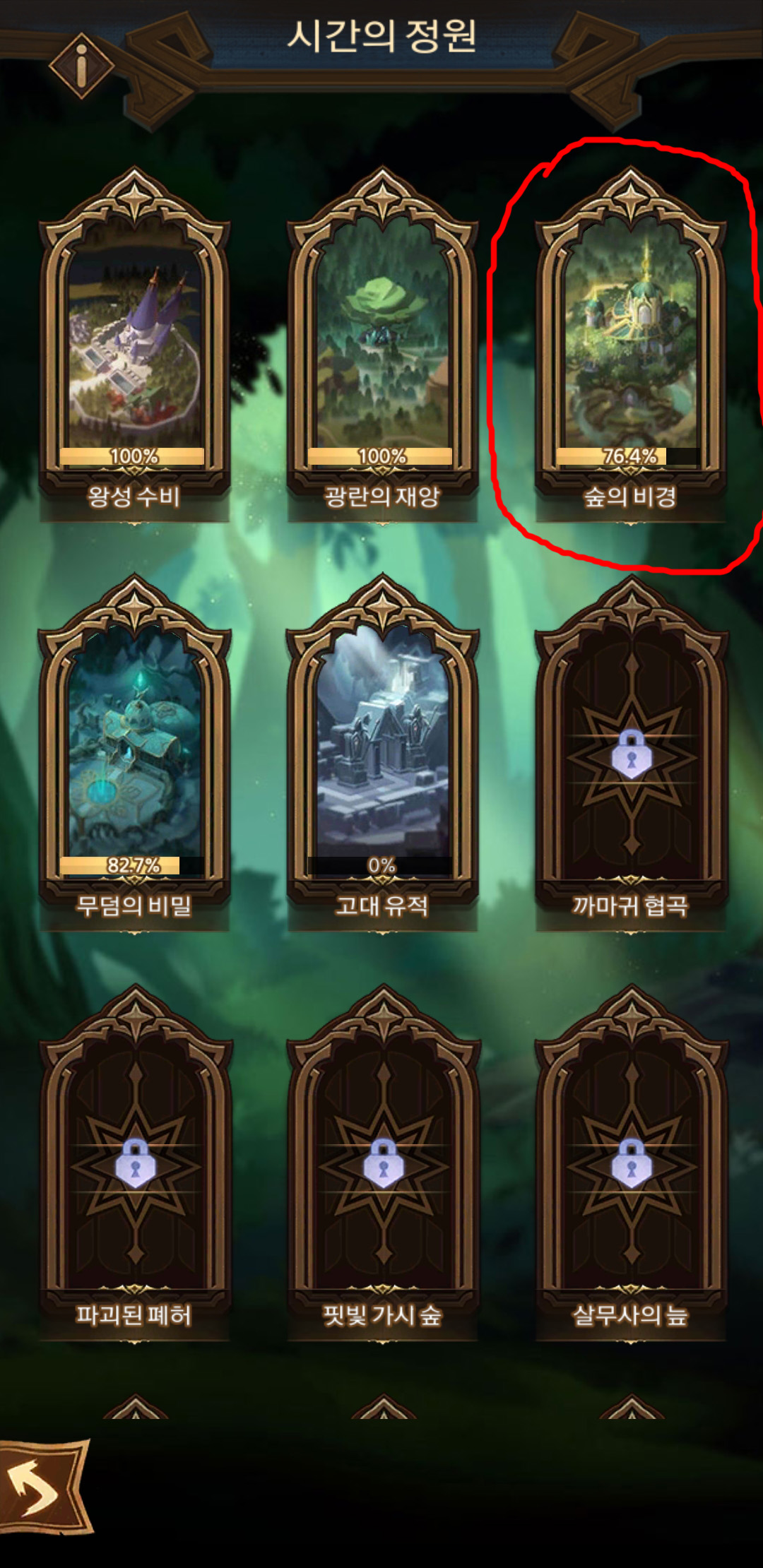 시간의 정원 맵 중 숲의 비경인데 영웅이 강하다고 클리어 되는곳이 아닙니다.