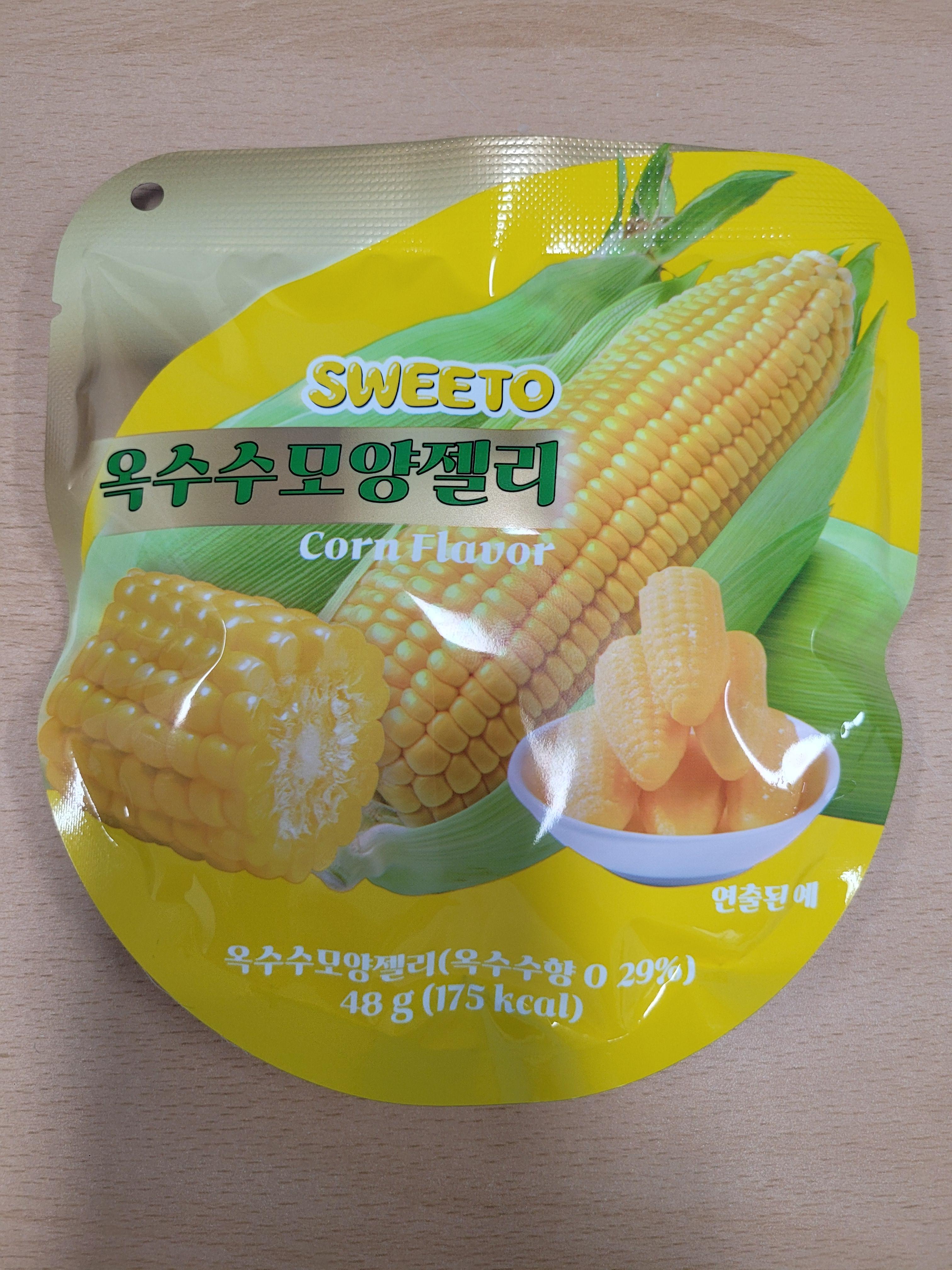 포장은 SWEETO 옥수수모양젤리라고 적어져 있습니다.