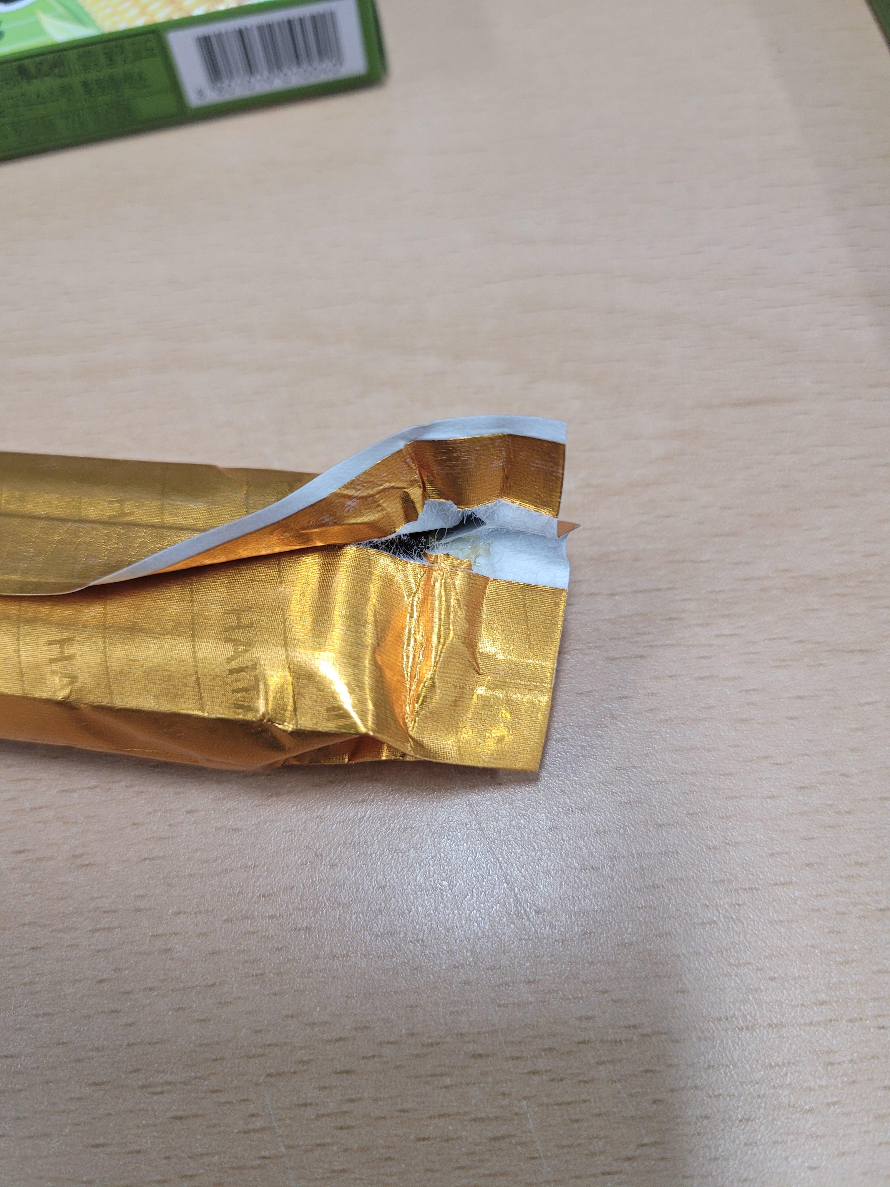 포장지를 뜯었는데 향은 옥수수 향이 나기는 하는 밤양갱과 크게 모양이 다르지 않네요.