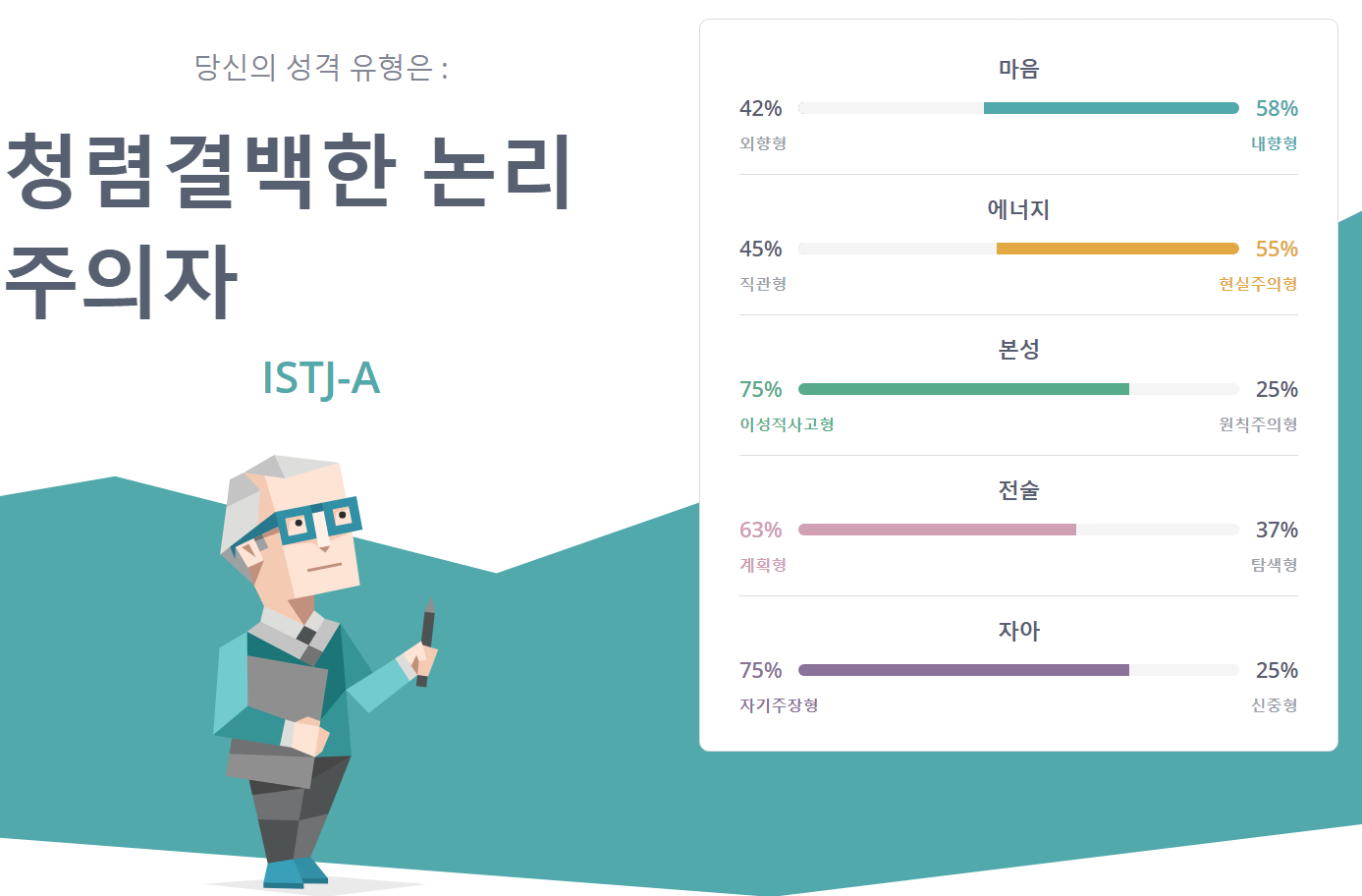 저는 ISTJ-A 유형으로 나오네요